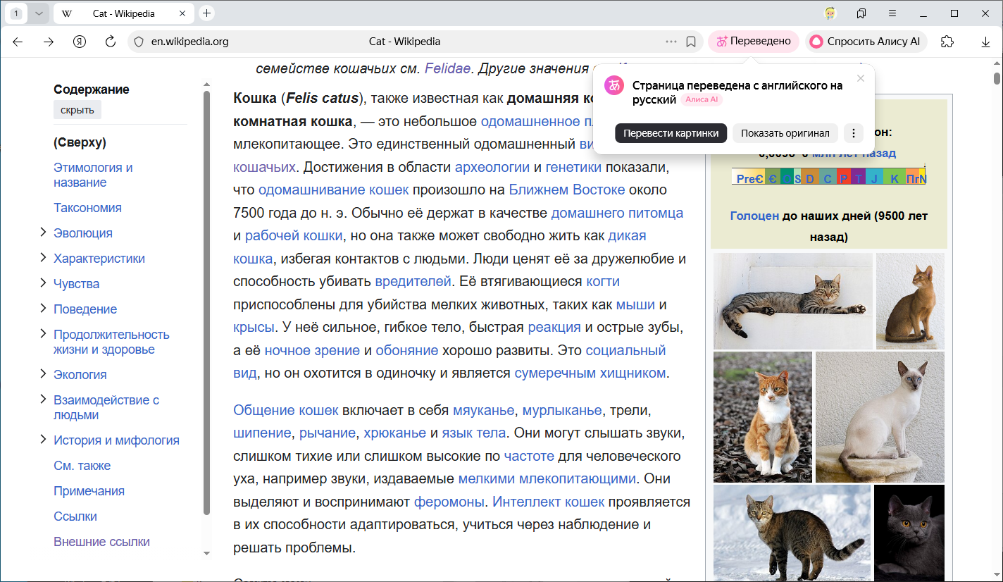 • Чтобы перевести текст страницы на язык интерфейса Браузера, нажмите в окне Перевести. Чтобы вернуть страницу на языке оригинала, нажмите в окне Показать оригинал.