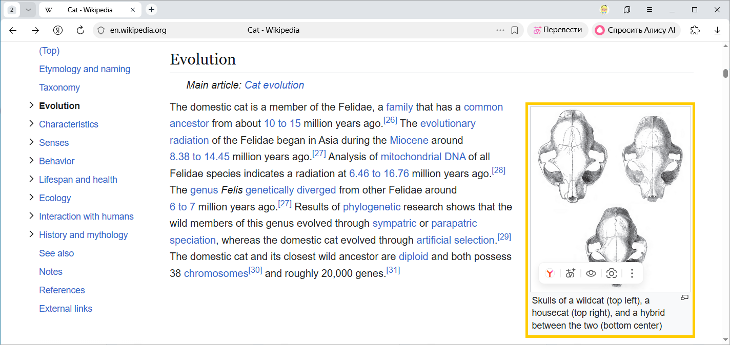 Браузер предложит перевести страницу, если ее язык отличается от языка интерфейса. Вызвать переводчик или перевести отдельные слова, картинки или видео можно через контекстное меню.