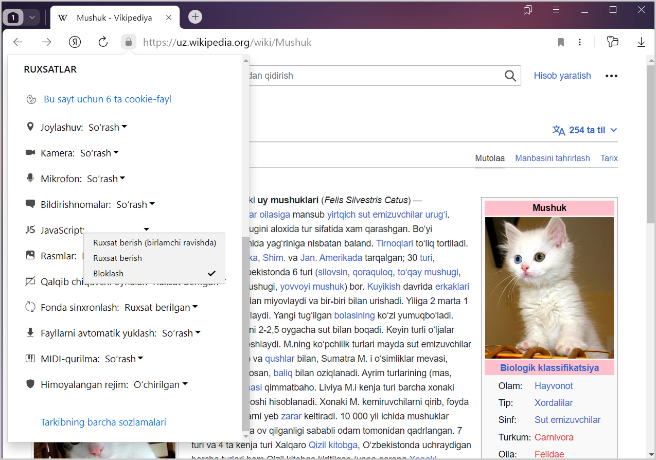JavaScript bo‘limida Taqiqlangan bandini yoqing.