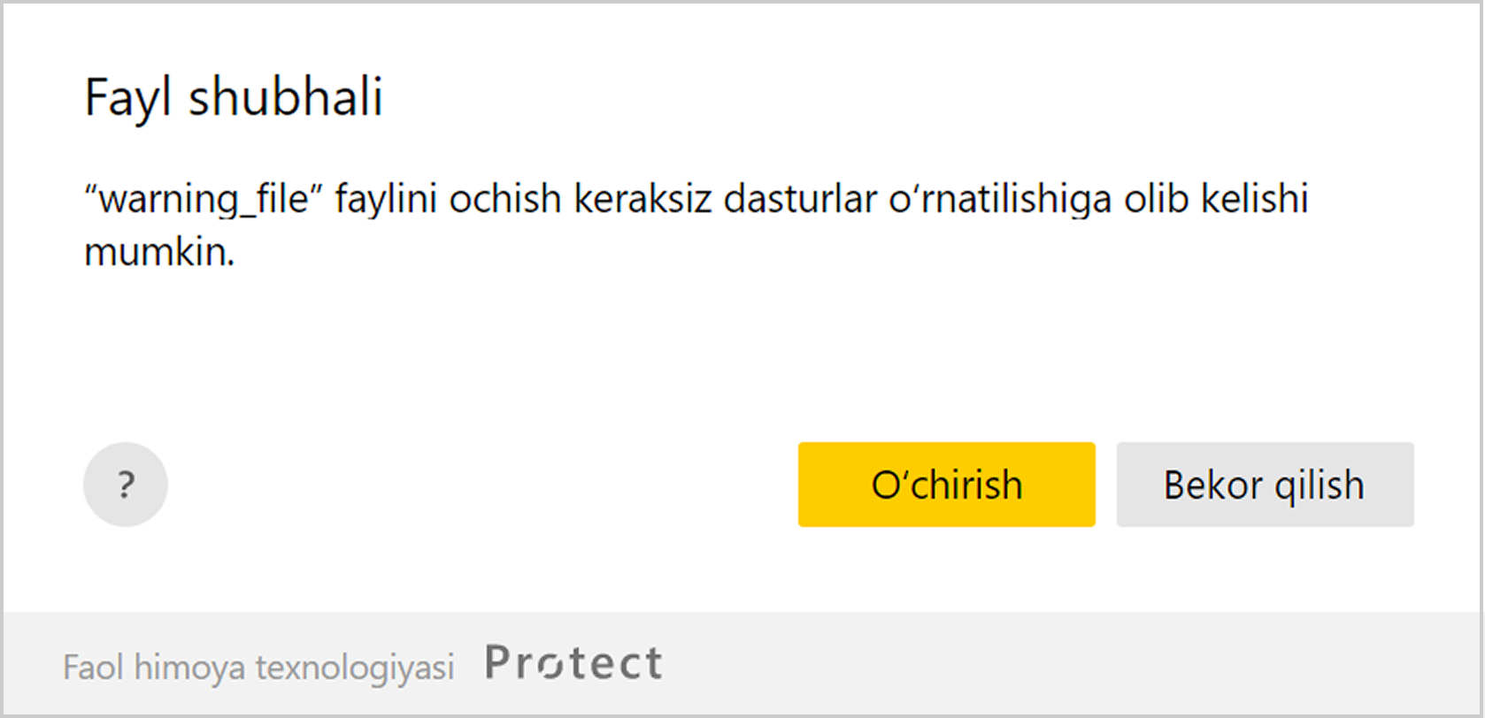 Bunday fayllarni Brauzer shubhali deb hisoblaydi, belgisi bilan belgilaydi va ularni ochishga harakat qilsangiz, ogohlantirishni ko‘rasiz.