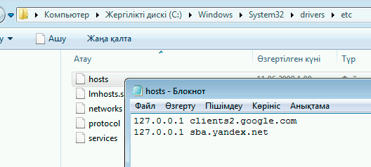 C:\Windows\System32\drivers\etc қалтасында орналасқан hosts жүйелік файлында сайттар домендері мекенжайларының тізімі мен оларға сәйкес IP мекенжайлары болады.