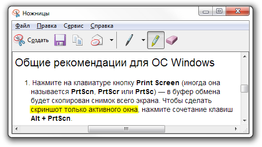 Программа «Ножницы» в Windows