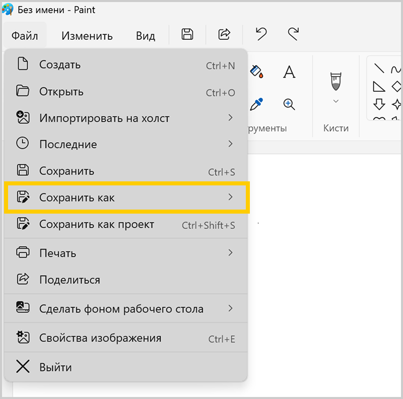 Нажмите Файл → Сохранить как или кнопку