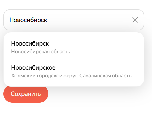 - Выберите нужный город из предложенных вариантов и нажмите Сохранить.