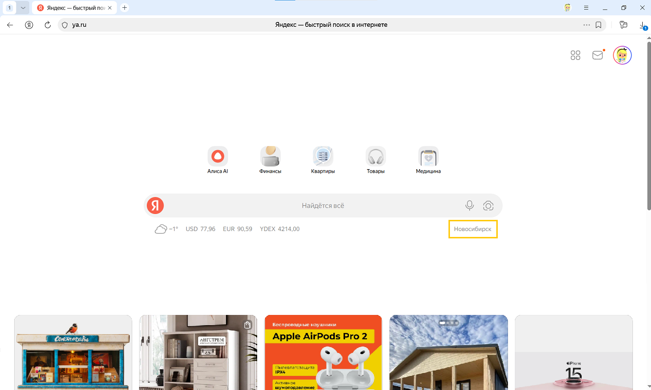 Запретить ya.ru определять местоположение
