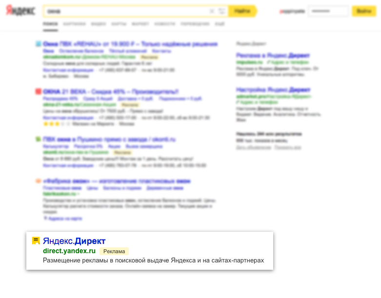 Показ Рекламных объявлений (далее по тексту также – «объявления») на Рекламных местах может сопровождаться пометкой: "Яндекс.Директ", или "Директ", или "Реклама".