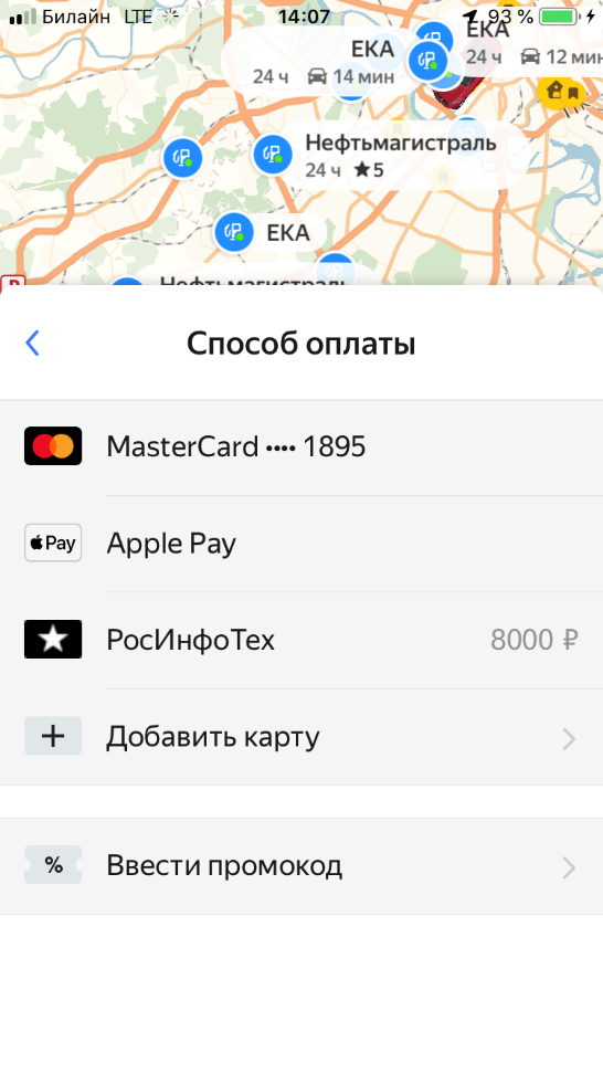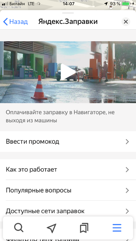 В меню «Навигатора» --> пункт «Яндекс.Заправки» --> Способ оплаты --> Ввести Промокод |