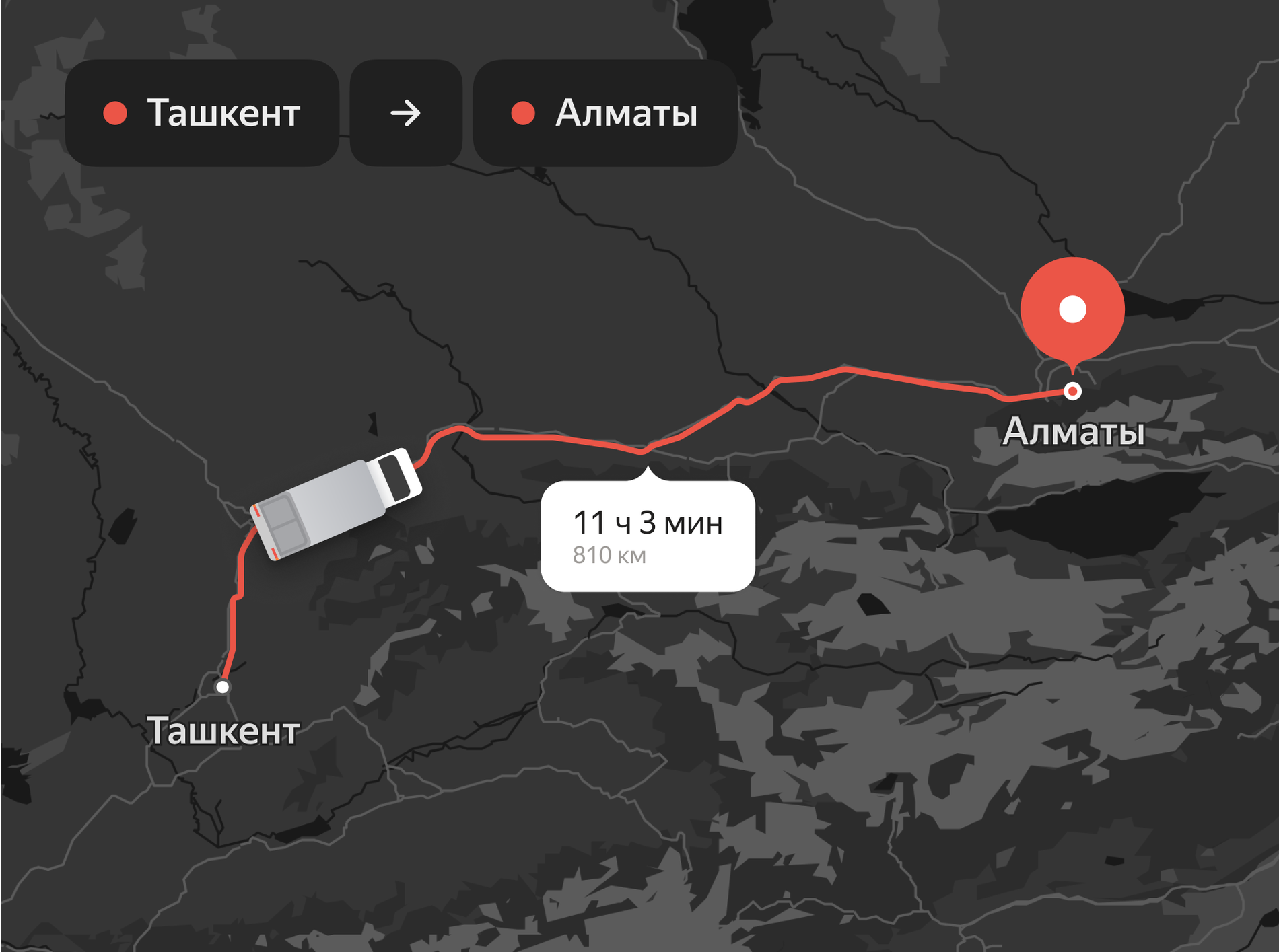 Стандартная версия API рассчитывает матрицы размером 10 на 10 точек отправления и назначения менее чем за 300 миллисекунд