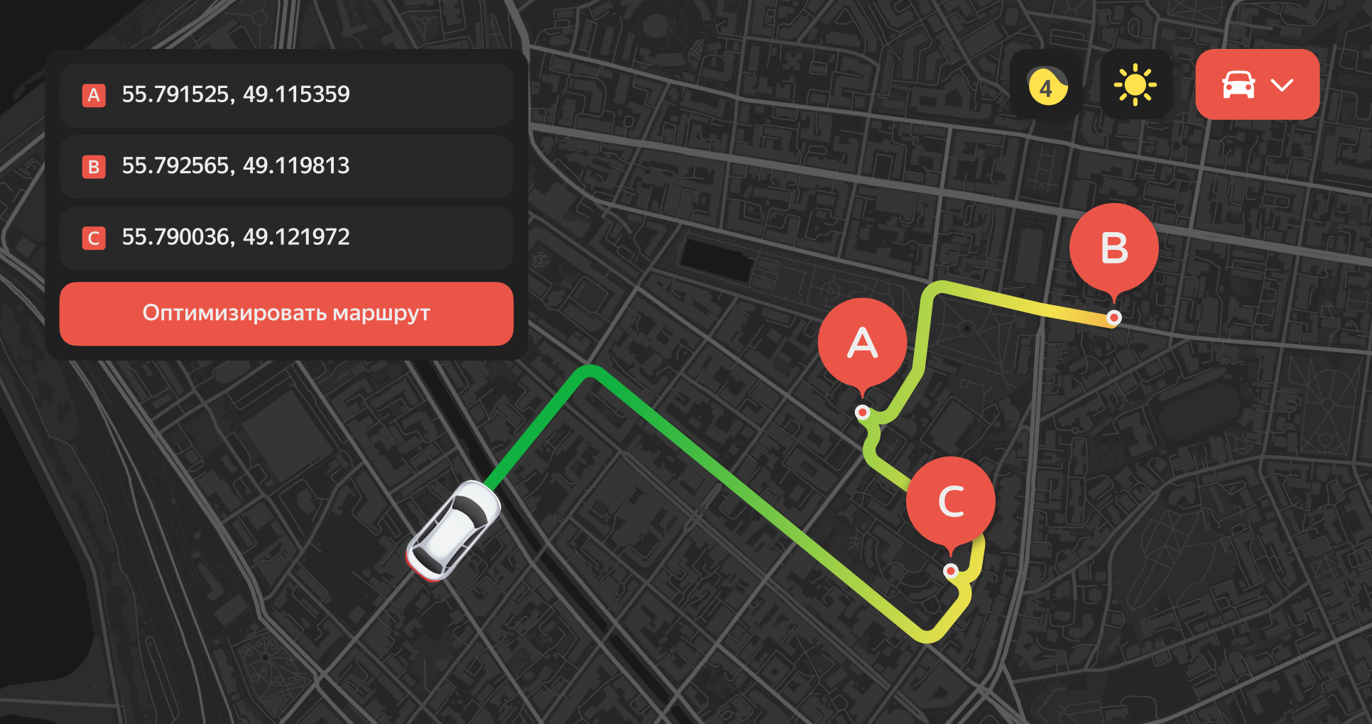 С нашими API вы сможете строить пошаговые маршруты с учётом пробок и прямо до нужного входа в здание. Это поможет вашим водителям терять меньше времени в пути