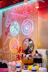 Суши-бар SM Take IT — это место, где вы можете насладиться вкусной едой по доступным ценам. Здесь вы найдете широкий выбор роллов, суши, онигири и других блюд японской кухни, а также десерты, такие как моти и аниме-кот «Мяут». Кроме того, в баре есть специальное место для приема пищи, оборудованное всем необходимым.