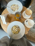 Очень вкусно, особенно паста!!! Лучшая паста в городе. Подборка сыров идеальная. Кофе и круассан великолепны. Очень рекомендую. Можно взять с собой.