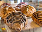 Добрый день! Прогуливаясь с детьми, увидели новое заведение, зашли попробовать кофе и выпечку. Потрясающий кофе, очень в редких кафе оно такое вкусное, просто 5 баллов!! Вкуснейшие круассаны, с очень приятной начинкой в виде крема) Из хлеба , пока попробовали томатный, детям очень понравился! И хочу отметить,что для детей тоже есть напитки, как какао и молочный коктейль! Теперь наше любимое место, будем часто заходить и пробовать новое!