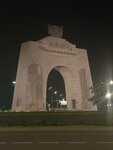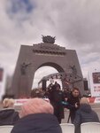 Красивая арка, монументальное сооружение в честь нашей Победы в В. О. В. Вокруг благоустроенная территория. Много молодёжи, катающейся на роллерах и скейтбордах, велосипедах. Хороший памятник!