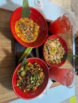 Место интересное, атмосферное в азиатском стиле. Попробовали несколько блюд. Оригинальной оказалась "утка в к/с соусе с омурайсу". Внешний вид омурайсу, несколько бледноват (по идее омлет должен быть более плотным и желтым), но вкус очень даже хорош. В следующий раз обязательно закажем еще. Также взяли "бору рамен" с домашней лапшой, маринованным яйцом, древесными грибами, водорослями и свиными или куриными клёцками на выбор. Рамен подали вместе с рыбкой тайяки в качестве "хлеба". А бульон был настолько вкусным, что был допит полностью. Еще, по иронии судьбы, нам достались онигири в панировке "аранчи-сан". На вкус онигири интересные, но из-за панировки рис местами весьма твердый, что доставляет особый дискомфорт во рту. В целом, кухня интересная, интерьер комфортный, персонал вежливый и подходит к гостям с особой заботой. Мы обязательно вернемся, и не раз. Объективная оценка 4 из 5, но авансом поставлю 5 с расчетом на то, что омурайсу будет с правильным омлетом. Посмотрим, как будет дальше.