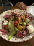 Были на завтраке, брали круассаны с семгой, было очень сухо, круассан разваливался, начинка выпадала и мы на какое то время отложили походы в это заведение. Но вот решили сходить на ужин и нам очень понравилось, по обслуживанию все обычно, мы были в будний день, загрузки не было. А вот еда была вкусной. Салат с ростбифом стоит своего, одной порцией можно наестся. Жена брала утку, и была довольна вкусом и особенно пюре из моркови. Баранья голешка не пересушена, мясо отслаивается, я был доволен. Еще брали закуски, но мне не особо понравились, вкуса было маловата. Коктейли на удивление не дорогие и вкусные. Да, фирменный десерт тоже ни чего, я не фанат сладкого, но был доволен.