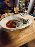 Пишу от души: отдыхала с подругой в этом ресторане впервые. Июль 2025 года. Приятное: встреча у входной зоны 5 баллов из 5. . Меню: 1.Салат с хрустящими баклажанами понравился- хрустели баклажаны, соус достойный, порция большая. 2. Борщ приготовлен с душой, как дома, подача красивая. Приятно. 3. Десерт - пальчики оближешь. Отдельное спасибо Шеф- повару.)) Посадка полная. Мебель обычная.Есть кальян. Музыкальное сопровождение имеется. Ценник умеренный ( кроме питьевой воды- она дорогая-450 руб за бутылку!!!!) Парковка рядом. Приятная девушка- официант Кристина. Помогала с душой выбрать блюда, предложенные ею варианты были съедены с удовольствием. Спасибо большое за внимание и обслуживание. Рекомендую для посещения.