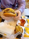 Картошка фри топ🫦 персонал расторопный и аккуратный , бургеры без сюрпризов и неожиданностей - на 4 из 5. Вкусный медово-горчичный соус и … в бургерах а курицей : филе! Установлены мобильные экраны для быстрого заказа и оплаты картой-удобно Будем наблюдать.