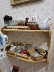 Замечательную полочку приобрела к общей кухне. Всё куплено в ДМС. Выполнено все из натурального дерева лаком покрывала сама.