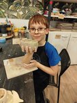 Ребёнок был на детском дне рождения у подружки. В первый раз работал с глиной и на гончарном круге. Осень понравилось волшебное превращение из комнчка глины в вазочку для мамы. 😊 Выражаю огромную благодарность мастерам Анастасии и Кристине за помощь и доброту! Обязательно придём ещё - на мастер-класс и по росписи.