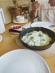 Скрембл с нежной текстурой, дополненный ломтиками авокадо и свежим микс-салатом.