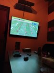 Заведение хорошее, можно провести время, но средние и большая комнаты явно можно переименовать в маленькую и среднюю. В самой вип комнате ничего кроме экрана и колонки с 2 микрофонами нет, разве что игру можно взять. Настольную игру. В них вообще играют?) хочешь играть в плейстейшн - иди в общий зал. Можно заказать кальян, что добавляет опций. Но как-то все равно не то. Скудно, скучно =(
