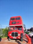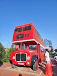 Классический английский дабл дейкер. Интересно вписывается в окружающую архитектуру, красную плитку. Автобус стоит высоко, да и сам высокий, поэтому его можно увидеть из далека. Очень интересно задумано и проработано!!! Рекомендую.