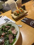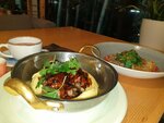Друзья привели показать новое место, еда вкусная, относительно, но сервис разочарование Не уточнили в каком порядке приносить еду, принесли в разнобой, забыли про блюдо, постоянно не хватало вилок, я не понимаю в чем проблема принести приборов по количеству блюд , подруге принесли медальоны как подошва, ей самой пришлось вставать идти разбираться, их переделали, но положили на ту же грязную тарелку и без каких-либо извинений