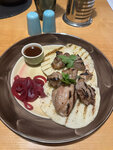 Очень вкусно, но пришлось ждать очень долго, так как попали в выходной и праздник "День матери". Цены выше среднего. Атмосфера приятная, спокойная. С ребёнком на коляске поднимались по лестнице. Находится в сосновом лесу, можно прогуляться до и после.