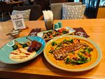 Заказывали еду из детского меню все очень понравилось, не стали заказывать из остального меню еду, так как было мягко говоря не очень аппетитно, но несмотря на это, та еда которую мы ели была очень вкусная, официанты доброжелательны и приветливы, очень нравятся такие люди, об этом отдельное спасибо, и побольше таких бы позитивных людей 😊
