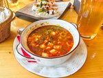 Приезжали в город на выходные. Зашли пообедать, а вечером и поужинать сюда же заглянули.. Оказалось лучше, чем ожидалось, хотя морепродукты явно не их конек - мидии и креветки передержали (за это минус звезда). Без пафоса и излишеств - простая и вкусная еда. Солянка была наваристая вкусная и обжигающе горячая, класс. Стейк - то, что надо, закуски и салат интересные. Пиво свежее, из своей пивоварни и недорогое при этом. Приносили всё очень быстро. Ребята официанты там молодцы, работают слаженно, к клиентам внимательны. Нам всё понравилось. Ушли на позитиве, сытые и довольные. Что еще нужно туристу.