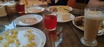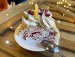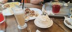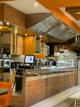 Хорошое место для отдыха всей семьей. Работает по принципу столовой: берете поднос, выбираете еду, платите, относите на стол, оплата на кассе. После еды, стол убирает официант. Атмосфера уютная, больше похоже на кафе, очень удобные стулья, приятное обслуживание, можно брать на вынос, есть замороженная продукция: пельмени и пр. Есть кондиционер. Работает уличная веранда. В июле народу было немного. Выбор еды большой, голодными вы не уйдете. Котлеты, мясо по французски, куринные сердечки, супы, блины, компоты нам понравились. Отдельно продаются десерты и кофе. Я брала десерт павлова: крем был творожный и очень много сахара. Кофе мне понравился.