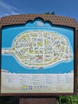 Приехали на остров на машине. Огромная удобная парковка. Чтобы попасть на остров надо взять талончики бесплатно в кассе. И пройти через турникет. Подняться по лестнице. У выхода с лестницы сразу смотровая площадка.Можно гулять как самостоятельно, так и приобрести экскурсию в кассе. В кассе также продавались сувениры. На территории много соборов, домов жилых и стилизованных. Есть музеи. Кафе и бары.Сувенирные лавки. Есть и туалеты везде.Можно покататься на лошадях. Мы дошли до речного порта( на остров можно попасть на кораблях). Нам не очень повезло: в июле 25г была жара +33*. Мы спасались остановками в кафе и в беседках. Вообще понравилось.Рекомендую.