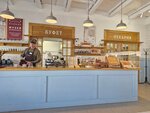 Очень душевное место. Пироги необыкновенные, с разными начинками - сытные и сладкие. Взяла с сыром и шпинатом и классика - яблочный. Пока я наслаждалась вкусами, дети пошли на мк по пряниками. Проводят каждый час. Испекли два пряника. Дороговато, если у вас 2 и более детей. Скидок нет. Но разово можно себе позволить.