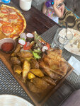 Тамаша мекеме. Үлкен бөліктер. Біз том ямға тапсырыс бердік - өте жақсы, көптеген теңіз өнімдері,"қасық тұр". Жұқа пицца. Жалпы бәрі дәмді