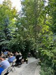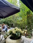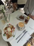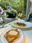 Потрясающая веранда, вся зеленая и очень уютная! В целом за это 3 звезды. Приходили с подругой в субботу в районе 17 часов. Ожидание столика 15-20 минут на веранде. Сели, ждали меню минут 10. Далее блюда ждали 30 минут (предупредили). Заказала завтрак (лосось на бриоши) и латте. Кофе попросила подать с завтраком. В итоге холодный завтрак, с ледяным лососем и холодным яйцом. Кофе после подачи ждала ещё 10 минут. Официанту сказали, у подруги была также холодное основное блюдо (утка) и очень маленькая порция. Официант предложил заменить мне блюдо и подождать ещё 30 минут :))) это все. Ребята официанты видно что зашиваются, но и гости платят явно не за холодные блюда. Чек не ниже соседних заведений, сюда скорее всего не вернусь.