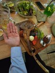Құрметті оқырмандар! Бүкіл Шымкентте бұл мейрамханаға қарағанда дәмді стейктер жоқ. Мен мұнда жиі барамын, қонақтарды әкелемін және әрқашан жарылыспен. Үлкен Томогавк стейкінің құны 6500 тг, внутри ішінде 500 грамм болуы мүмкін. Ет өте дәмді және әрқашан well done!!! Салаттар мен суши бар, коньяк тек Арарат. Қазақстанды да әкеле алар еді. Қалай болғанда да, стейк өлшемдерін және менің қолымды қараңыз! Даяшылар әрқашан уақытында қызмет етеді және бәрін дайын болады. Мен бұл мейрамхананы барлық қонақтар мен тұрғындарға дәмді стейк іздеуге ұсынамын!