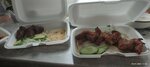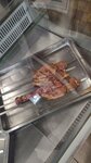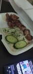 Очень рада что нашла эту шашлычную. Жаль что так поздно. Каждый шампур-это одна порция. Дорадо был хороший свежий, размер тушки без хвоста и головы примерно с мою ладошку. Не мелкий, но и не крупный точно. На фото В боксах уже отьеденые порции. Видно что все честно по весу. Приличные куски мяса. Баранина тоже было отменная, не резиновая, без сала или жира, чистое мяско. Ну конечно баранина все равно отличается запахом. Филе индюшки и кур не сухие, хорошо маринованные. Свинина мякоть(шейка) очень вкусная не сухая, не резина. Свинина корейка по весу конечно выигрышнее, но суховата, хоть и мал прям чувствуется. Но есть можно. Как бюджетный вариант. Но получается порция огромная. Крылышки тоже вкусные. 3шт у меня было, хороших мясистых. Теперь осталось попробовать сибаса. Уверена не разочаруюсь. Кстати лосося я видела при мне жарили порцию-тоже большой стейк. Но меня им не удивить. Очень рекомендую. В шашлычнлй можно поесть на месте, есть туалет. Можно с собой (САМ КОНТЕЙНЕР ПО 10Р). Жаль НЕТ ДОСТАВКИ! готовят около 20мин.