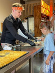 Дочка 9 лет была на мастер классе по изготовлению дубайского шоколада.Очень понравилось,подробно объясняют,все чисто,ребёнок справился.Интересно было всем в ресторане,подходили смотрели,что происходит.В конце мастер класса получили большую плитку шоколада.Очень вкусный))
