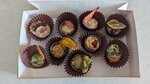 Выглядит всё шикарно. Шоколад свежий, аппетитный, интересные начинки. Шоколад с рыбой? Звучит странно, но на вкус, оочень интересно ) П.С. конфета с кокосом вызвала оргазм. Невероятно