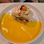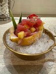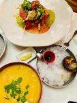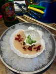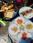 03.09.2025г. Суп Indian shorba, морепродукты и рис - суп простенький, без наполнений, один бульон, по вкусу к нему вопросов нет. Из морепродуктов на рисе, кусочек слежавшейся рыбы, осьминог и одна перемороженная креветка, которую невозможно есть. 840₽ Креветки и блю чиз - блюдо в меню «хрустящее», по факту мокрые креветки в кляре, очень посредственно на вкус 990₽ Ролл гребешок и лосось - вроде бы сложно испортить блюдо, но опять, рис разваливается, лосось и гребешок вкус не чувствуется, возможно соус частично спасает здесь ситуацию. 790₽ Чай пряный Юдзу, 1 л. Чай вывез всю сложившуюся ситуацию, иначе совсем было бы грустно. Вкусный. 580₽ Итого: 3200₽ из которых 2620₽ заплачено в никуда. Не совсем понимаю ажиотаж данного заведения, либо люди вовсе не разбираются и не ели свежих морепродуктов, либо место скурвилось. Возвращаться сюда не хочется, советовать кому либо уж тем более.