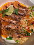 Неоднократно проходили мимо и ВСЕГДА была очередь! Сегодня нам повезло и очереди не было, свободно зашли в заведение и даже сразу нашелся столик. Необычный формат обслуживания: на стойке лежит меню, карандашики - изучаешь, выбираешь (ставишь галочки) и отправляешься в путешествие к морепродуктам, так же можно ознакомиться с меню на экранах и увидеть блюдо. Ожидание блюд быстрое до 10-15 минут, по громкой связи называют имя и номерок (присвоенный в чеке). Мы пробовали: - роти кальмар и креветка - суп луковый с креветками - кокосовый рис - лангустины, рис и карри. Вкусно, демократично, красиво! Есть ли желание снова вернуться? - Определенно, ДА! ☺️