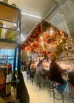 Очень крутое место! Нет официантов, сам берёшь меню, отмечаешь и идёшь на кассу. Там оплачиваешь, на чеке номер и имя. Когда блюдо готово, на раздаче называют этот номер и имя, идёшь сам забирать. Блюда отдают не все сразу, часто по одному. Брала недавно там морских ежей - свежайшие! Всё вкусное, свежее. Пришли в пятницу в 16.30. Где-то с 17 примерно начало появляться больше народу, и образовались очереди. Единственный минус - запах еды и кухни есть, но это перекрывается разнообразием меню и качеством.