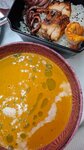 Замечательное место, несколько раз была в этом кафе на Чистых прудах. В этот раз пришла в кафе на Белорусской, работаю рядом. Заметила, что поменялась немного концепция - раньше заказ нужно было делать на кассе и забирать на стойке, а номер заказа объявляли по громкоговорителю. Сейчас стало намного лучше. Были сегодня в обеденное время, девушки очень милые, приняли заказ, вскоре принесли - блюда огромные, очень наелись на целый день. Заказала индийский суп, вкусный и пряный, с рисом, щупальцами осьминога и креветкой, бульон насыщенный. Взяла его лимонад фруктовый и хлеб собственного приготовления. Спасибо большое за приятную обстановку, порции и качество!