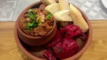 В этот раз мы заказали дюжины хинкали с мясом и зеленью и порцию детских мини хинкали. Мини хинкали очень понравились детям, тем что их очень удобно есть и у них очень вкусный сырный соус. Я себе заказало лобио с беконом и капустой острой. Это было очень вкусно! Капуста невероятно вкусная, подавалась со свеклой. Порции большие. Лобио как полноценное блюдо. Даже объелась.