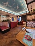 Это место нам порекомендовали друзья. Были в будни после обеда, посетителей довольно много. Принимали только наличные из-за проблем с интернетом. Интерьер интересный, особенно решения с люстрами) Наша официантка,видимо из-за полного зала, была на расххват. Подача интересная. По самим блюдам- вкусно, но без восторга) В хинкалях было очень много бульона и мало мяса- брали свинина/говядина с зеленью...и креветку. Некоторых позиций- не было в наличии. Карточку гостя с отметкой посещения- мы сразу с чеком не взяли, второй раз в сдаче ее не увидели))) Ну то есть, по моей оценке это 5,но с большим минусом)