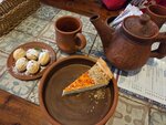 Густой пряный суп на основе говяжьего бульона и томата с отварной говядиной, рисом, грецкими орехами, чесноком, свежей зеленью и ароматными специями.