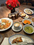 Сидели на первом этаже прямо напротив открытой кухни. Столько осуждающих и презирающих взглядов от поваров я еще в жизни ни в одном формате открытой кухни не видела. Зачем смотреть людям в рот и навязчиво смотреть в глаза…. В процессе приготовления нашего заказа, посмела дать свой комментарий в адрес гуакамоле, в который добавили очень много масла, за что тоже получила мысленную пощечину от повара. Все бы ничего, если в итоге мезе из заготовок не оказались ну реально самым вкусным блюдом. Для людей привыкших есть жирные блюда на повседневной основе, наверное, ок. А я для того и выбираю рестораны, чтобы в меня не вливали жир с маслом ради ощущения вкуса, нужно больше работы с балансом через другие составляющие. Итак, лепешки отличные, мезе отличные, кофе как кофе, а вот завтрачные блины с лососем очень невкусное тяжелое блюдо, впервые пробую такой неудачно тяжелый айоли, будто бы с привкусом трюфеля, и если даже он там есть, можно было бы и предупредить. Рыба самая посредственная из всех ресторанов, что я когда либо посещала. В общем, блюдо осталось недоеденным. Неплохая лепешка с грибами, были еще сырники, которые тоже выглядят очень посредственно. Оверпрайс дикий. Поняла это, когда меня официант начала убеждать в том, что блюда кажутся тяжелым из-за того, что я наелась закусками) Тогда вопрос на постановку меню? Зачем делать такие закуски, с которых можно треснуть? В общем, поэтому осталась без чаевых, убеждать меня не нужно в лишнем, я поделилась своими ощущениями. Кстати, комплиментарный хлеб отвратительный, я даже не знаю, где они такой ужас откопали. Не вернусь больше, не повезло, не поняла, за что такие отзывы хвалебные)