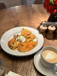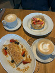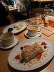 Была на завтраке с подругой, не впечатлилась. Достаточно высокий ценник, причем на мой вкус ничего особенного в блюдах не было. Подруга брала оладьи из цукини с лососем, простовато, я брала лепешку с лососем- в целом вкусно, но за 1200 хотелось бы бОльшего. Не понравилось, что на завтраках нет десертов, мы этого не знали, хотели попробовать наполеон. Нам предложили выбрать что-то из ассортимента сладких завтраков, выбрали по ватрушке, так как томленого творога не оказалось в наличии, а остальные блюда не похожи на аналог десерта. Ватрушка показалась не особо вкусной, сильно чувствовалась ваниль, крем заварной показался слишком жидким. Пару кусочков ягодки клубники. Сама творожная масса показалась достаточно зернистой, не понравился сам творог в ватрушке. К сожалению, забыла сфотографировать ватрушку. Интерьер прекрасный, посадка почти полная, много семей с детьми, столы на втором этаже стоят очень близко, слышен разговор соседей.