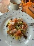 Ребята определённо что-то поняли в завтраках. Очень вкусно и выбор большой! Особенно понравились слабосолённый лосось, говядина, икра. И персонал тоже супер: улыбчивые, быстрые. Так ещё можно с собаками, работают с утра, есть веранда и соусы кладут отдельно от других продуктов, что позволяет дозировать.