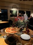 Попали на сезонное меню со сморчками. Прекрасное сочетание ингредиентов, были в восторге. 1. Пицца со сморчками - грибов много, соус белый, тесто пухлое 2. Корнишон со сморчками - также много Грибов и отличный соус жю, весь вымакали хлебом и корками от пиццы. Корнишона можно и побольше, совсем крошечный что грибов заметно больше 3. Паста со сморчками - самое неоднозначное блюдо, соуса и готов много, но текстура пасты твердая, не как аль Денте, а как будто больше в сырую сторону уходит 4. Салат с овощами и сыром, овощи отличные, масло ароматное, вкус прекрасный 5. Паста с курицей и сливочным соусом - в меню почему-то нет, ребёнку понравилось 6. Комплимент от ресторана: Хлебные корзины, было 2, вкусно, хлеб собственного производства 7. Тирамису - вкусно, можно чуть больше крема 8. Наполеон - нам показался эталонным, крема много, тесто хрусткое На веранде и 1 этаже алкоголь не подают, только 2 этаже Вода без ограничения